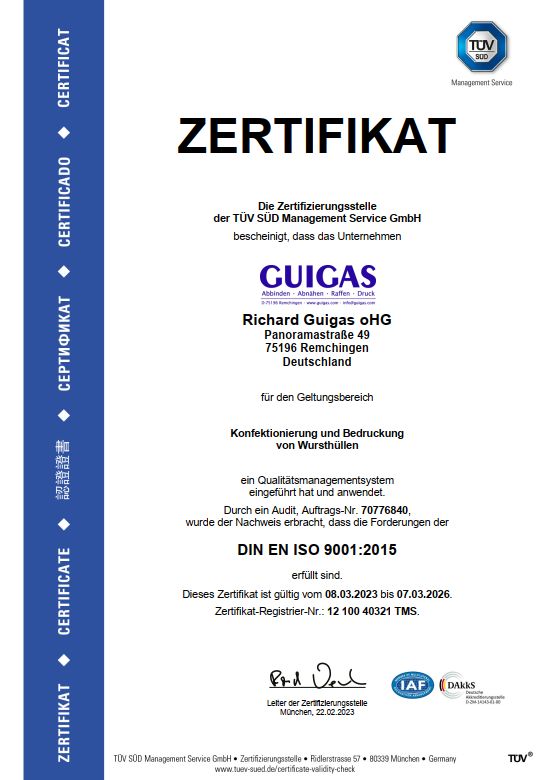 Kennzeichen unserer Konfektionierung. Unser Qualitätsmanagement